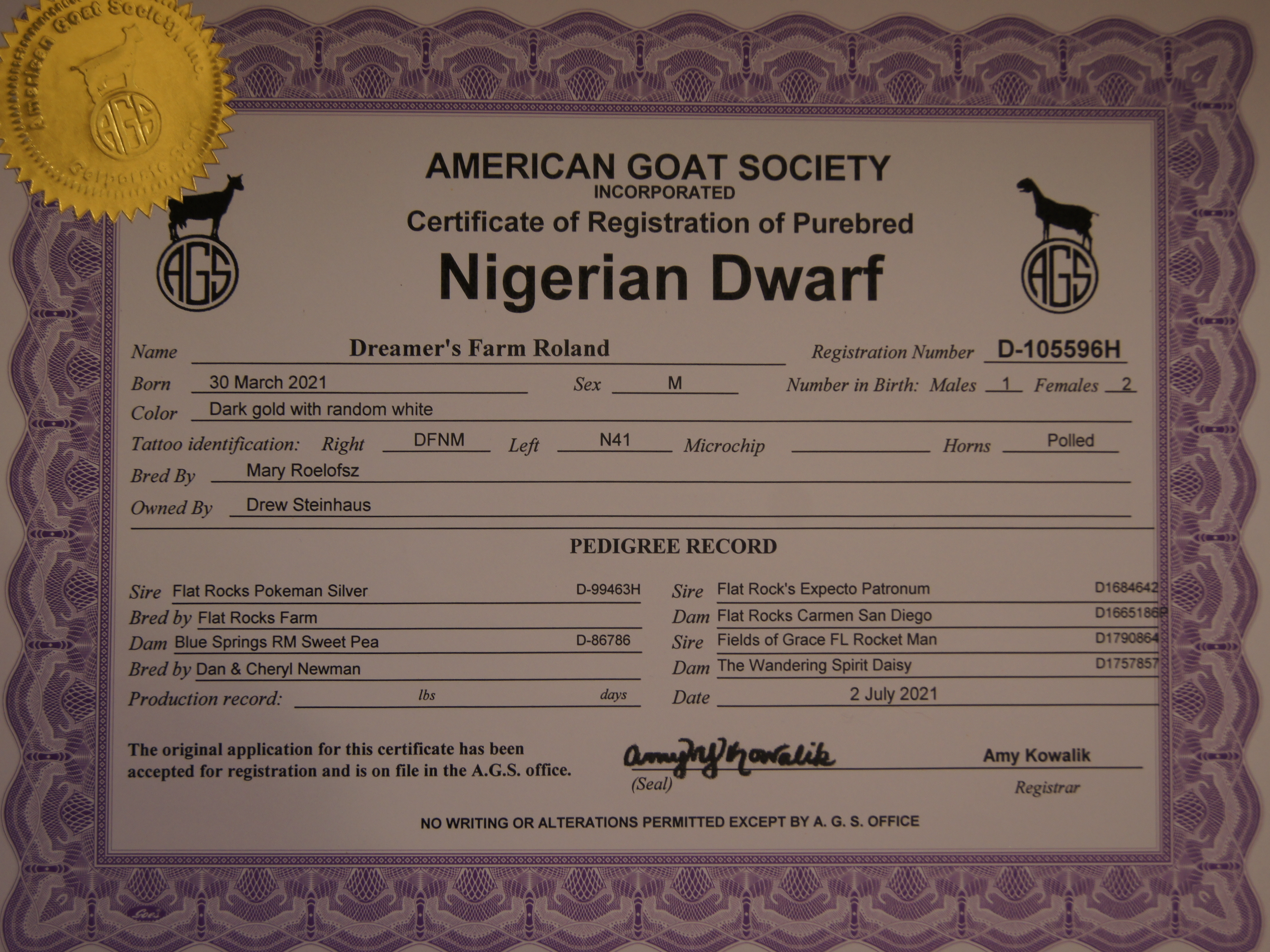 Roland is a great buck with a very curious and playful attitude. He has a golden-orange colored coat and brown eyes. He is polled and has an excellent pedigree.